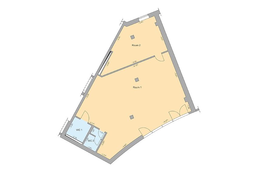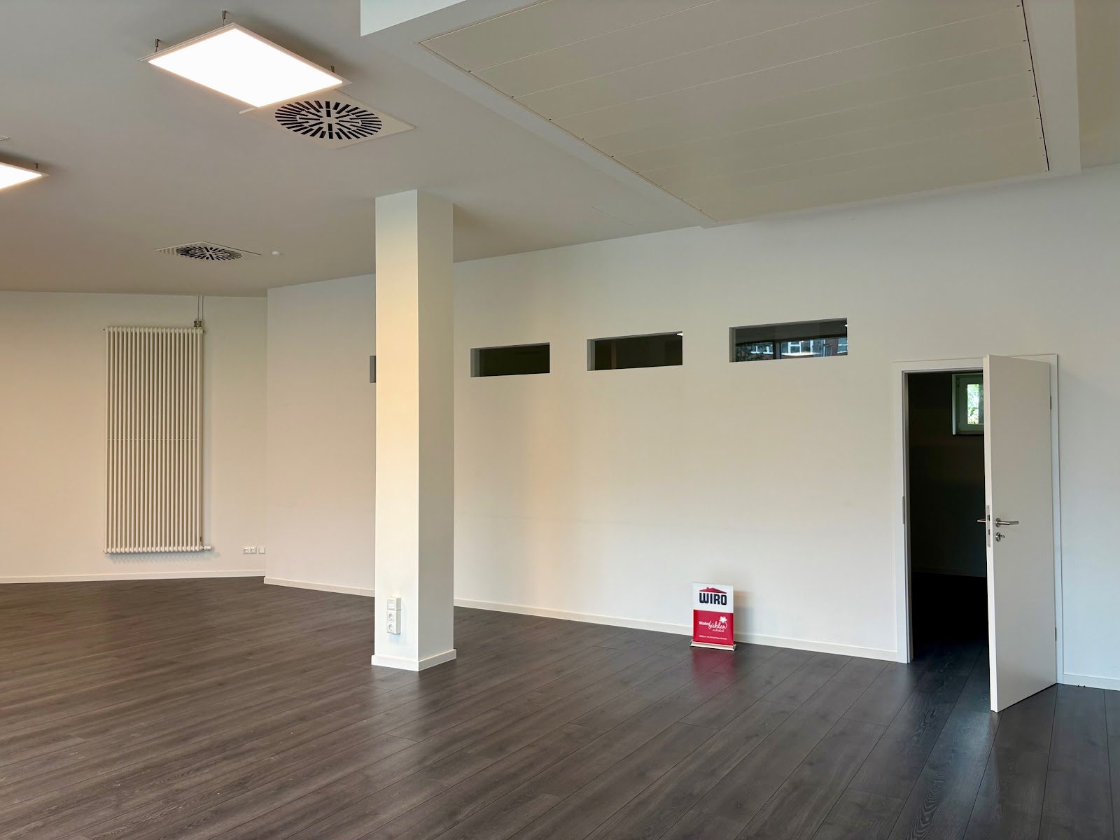 Zwei getrennte Räume, Panoramafenster sorgen für Helligkeit, zwei separate Toiletten - davon ein behindertengerechtes WC, Telefondose, Wasseranschlüsse für die Möglichkeit einer Pantryküche