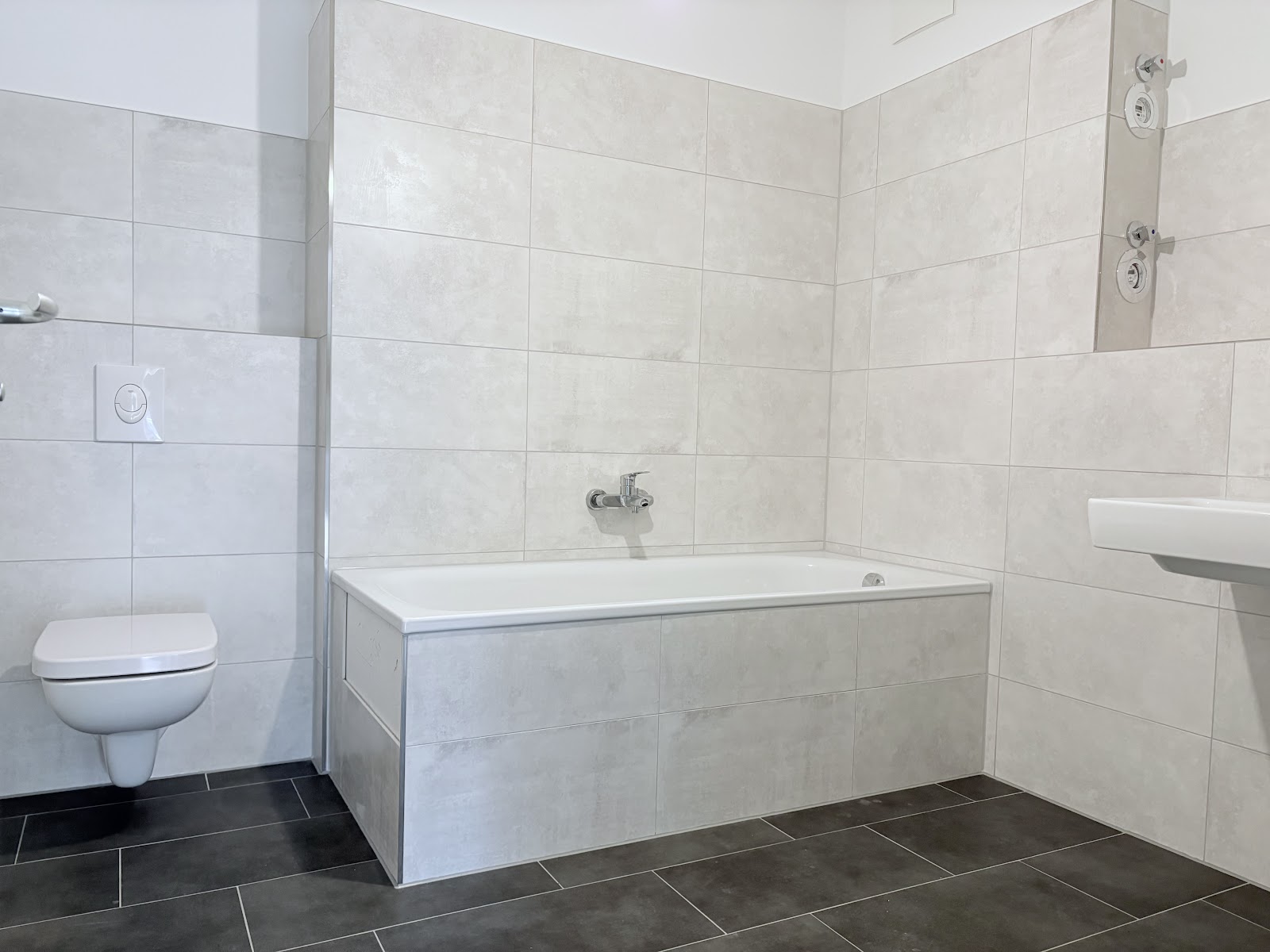 Freuen Sie sich auf ein modernes Wohnviertel, hochwertige Wohnungen, grüne Innenhöfe und einen großartigen Spielbereich für Ihre Jüngsten. Es erwarten Sie funktionelle Wohnungen mit attraktiver Ausstattung: bodentiefe Fenster, Fußbodenheizung, großzügige Bäder mit Handtuchheizkörpern sowie Fußböden in Dielenoptik. Die Wohnung befindet sich im Erdgeschoss und ist auch stufenlos im Eingangsbereich über eine Rampe erreichbar. Sie können auch mit dem Aufzug direkt aus der Tiefgarage ins Erdgeschoss fahren. Der Küchenbereich ist offen zum Wohnbereich gestaltet. Sehr praktisch sind die beiden Bäder. Ein Bad ist mit einer Dusche ausgestattet, das zweite mit einer Badewanne. Im Abstellraum können Sie bequem Ihre Waschmaschine anschließen.