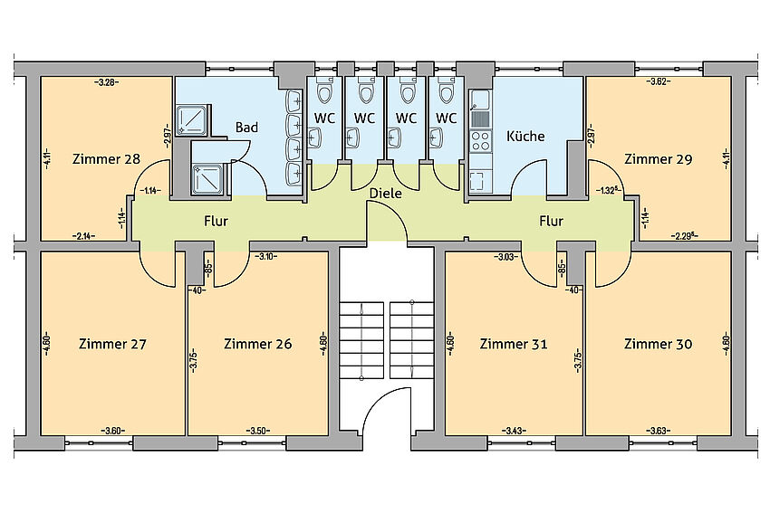 Studentenwohnen - Zimmer in einer WG, zentrale Warmwasserbereitung, Zentralheizung, Keller, Trockenraum, maschinelle Wascheinrichtung, Hausmeisterservice, Hausreinigungsservice, Kabelanschluss