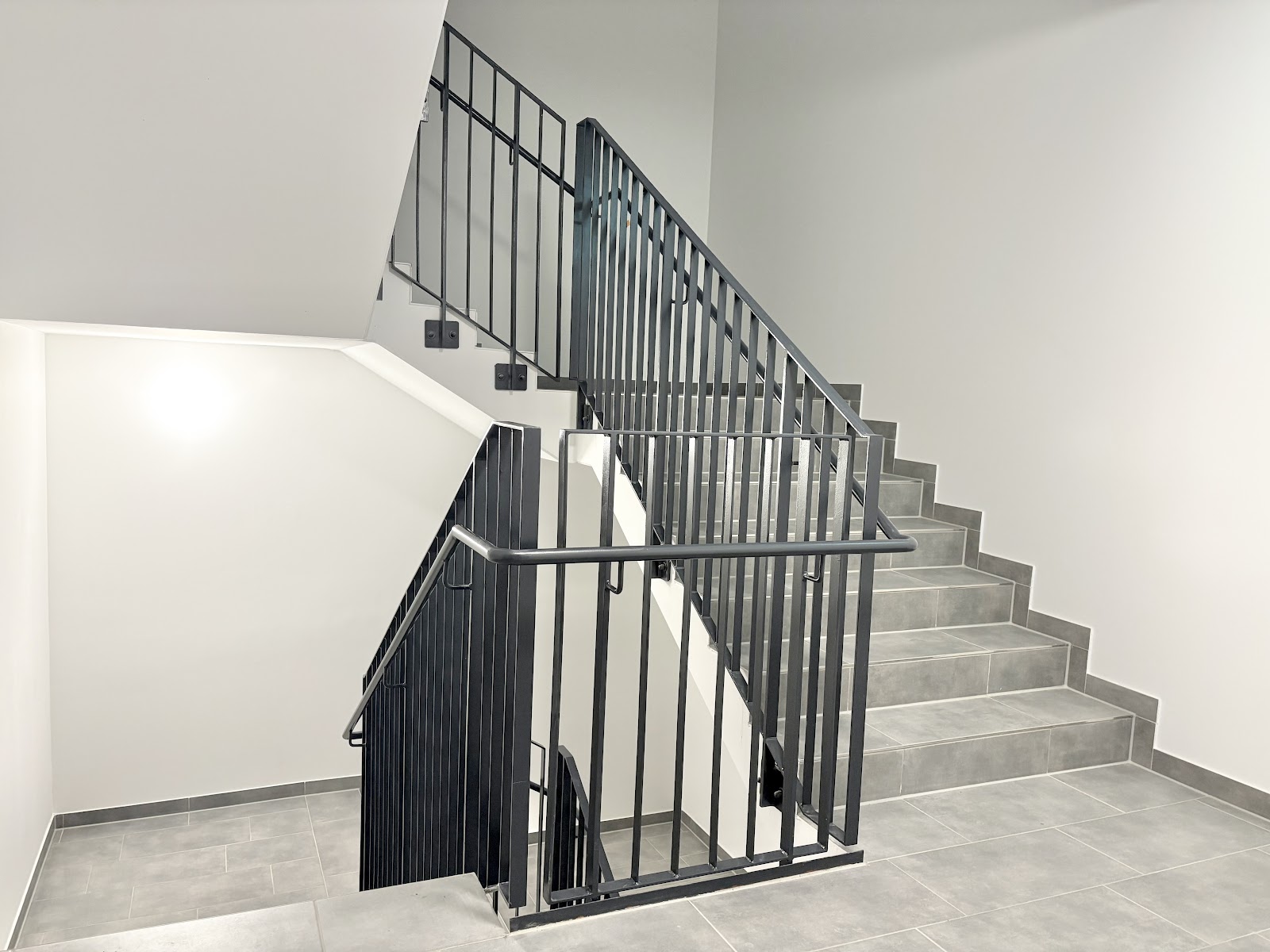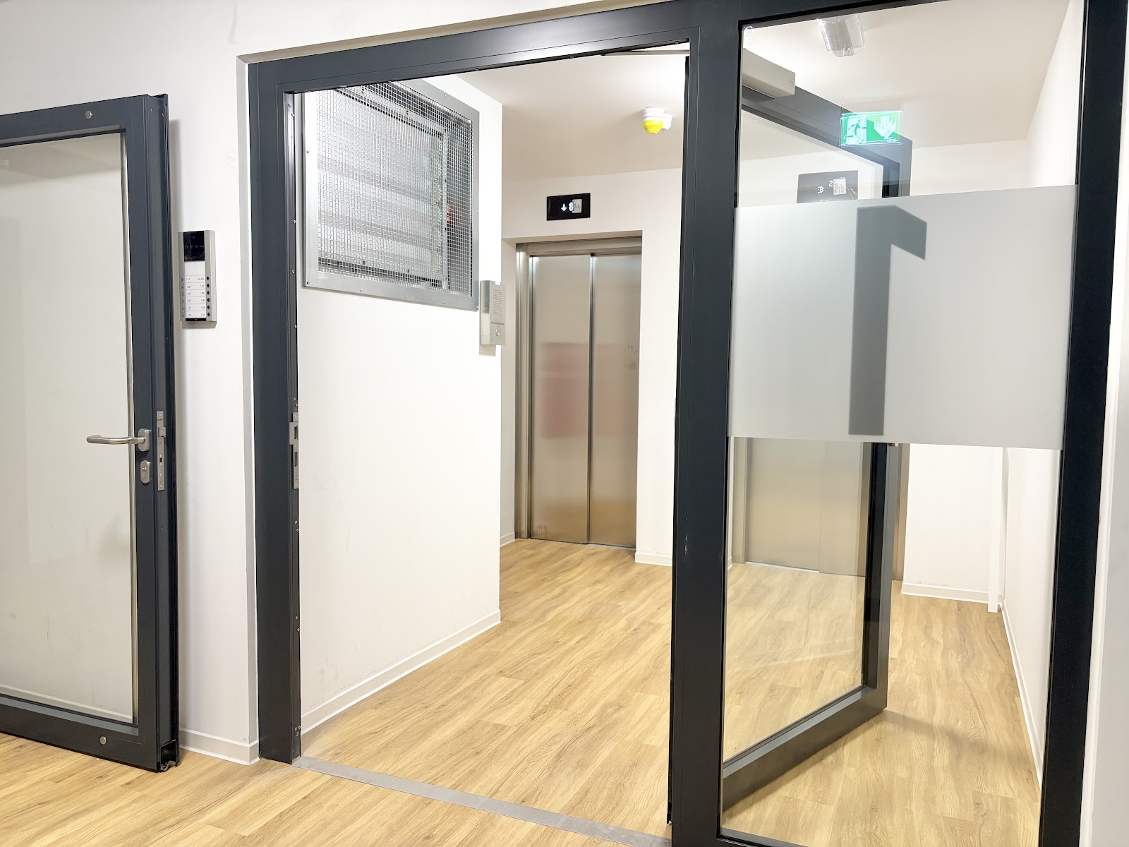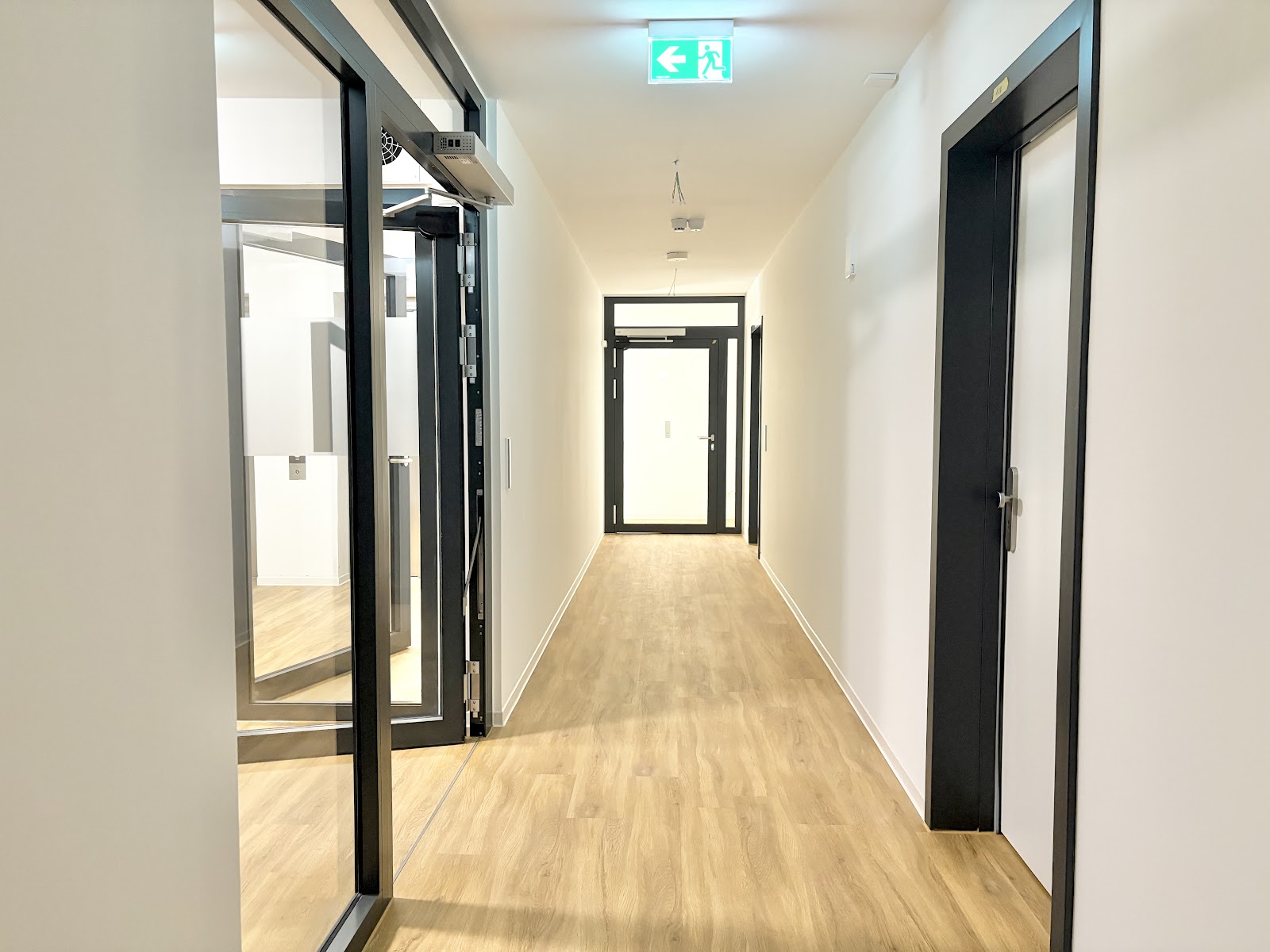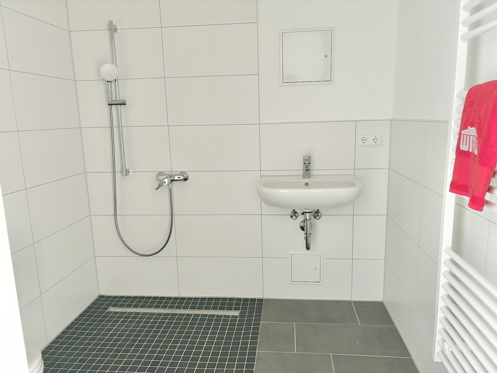 Ihr Apartment ist bequem mit dem Aufzug erreichbar. Es verfügt über einen hochwertigen Fußbodenbelag, bodentiefe Fenster und ein geschmackvoll gefliestes Bad mit ebenerdiger Dusche und Handtuchheizkörper.