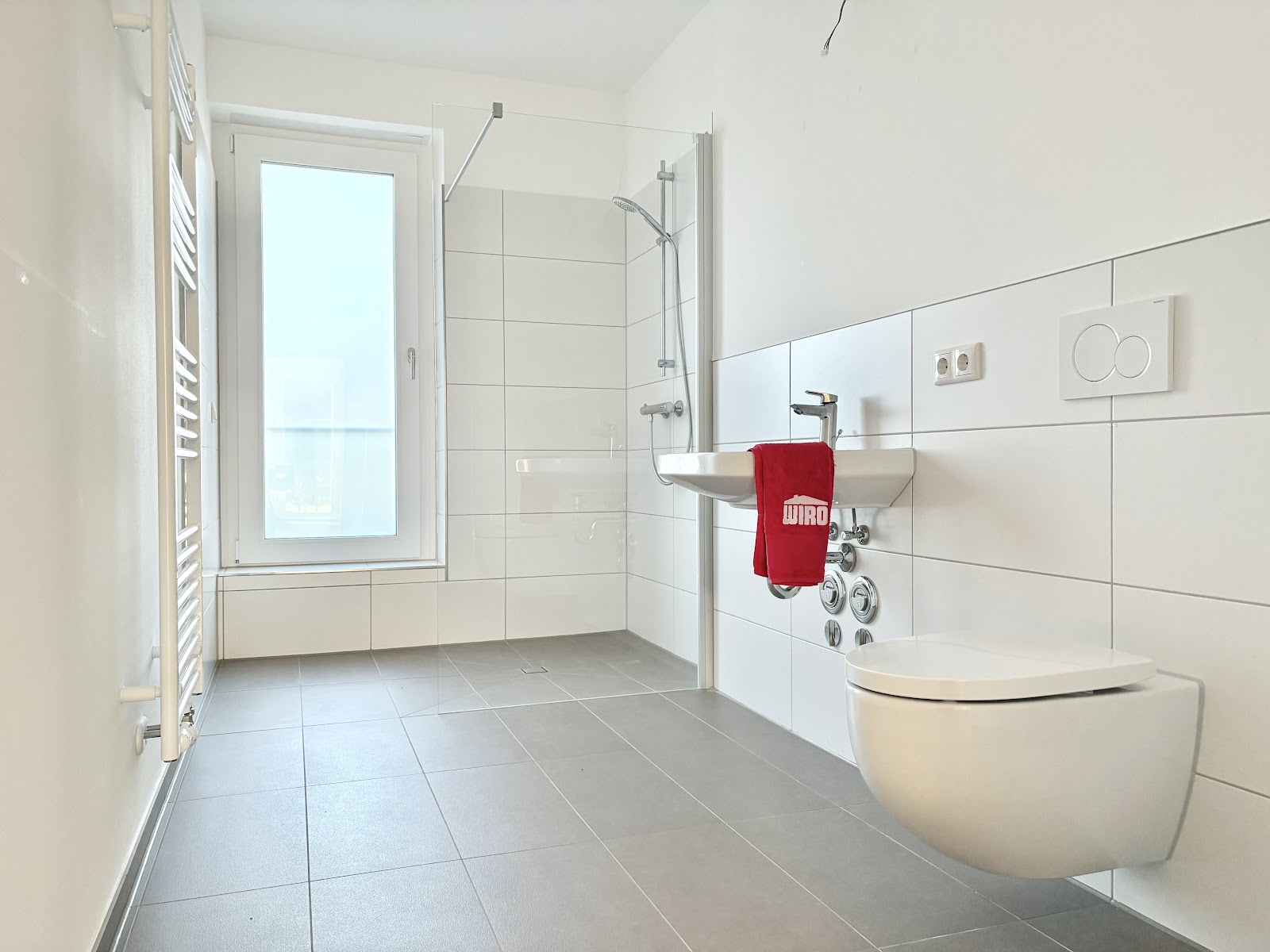 Die Wohnung ist barrierefrei und bietet Ihnen somit ein komfortables Wohnen. Alle Zimmer sind separat begehbar. Das ermöglicht Ihnen eine flexible und individuelle Aufteilung ganz nach Ihren Bedürfnissen. Die Terrasse ist direkt vom Wohn- und Essbereich zugänglich. Mit seiner optimalen Ausrichtung nach Süden können Sie die Sonne genießen. Eine bodengleiche, geflieste Dusche ermöglicht Ihnen ein bequemes Duschen. Das geschmackvoll geflieste Bad verfügt über ein Fenster. Der Waschmaschinenanschluss befindet sich im Bad.
